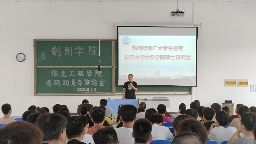 本网讯(通讯员 孙凯杰)为帮助学生更加全面地了解考研相关政策,掌握备考方法和技巧,更好地应对考研笔试和复试,6月10日上午,学院分别在3405及6405教室举办了考研动员与咨询会。长江大学计算机科学学院硕士生导师向华老师、姬厚灵博士,长江大学电子信息学院蔡昌新副院长出席了本次讲座,讲座由信息工程学院副院长杜松江主持。